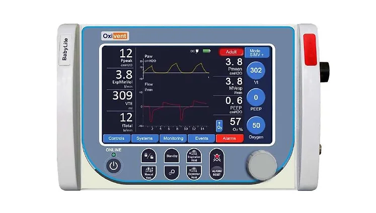 BabyLite Ventilator is for use on incubators, in hospitals, in ambulances, and for neonatal and pediatric patients.